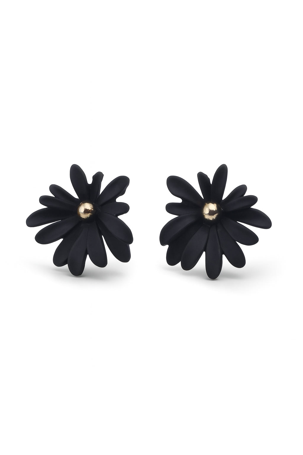 Jewello classic black flower design with golden bead stud dainty korean earring for women and girls. Gift for her.