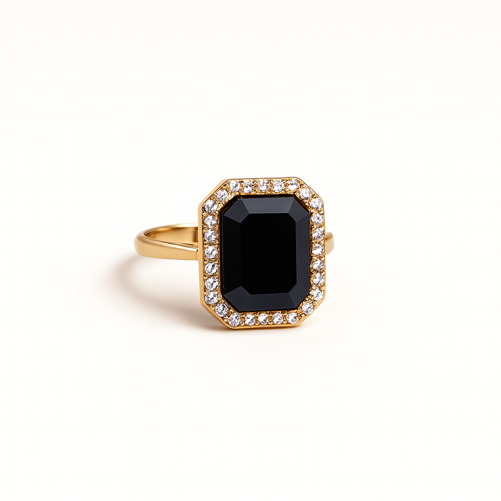 Jewello elegant gold plated and cubic zirconia stud chain pendant, earring, finger ring set for women and girls.