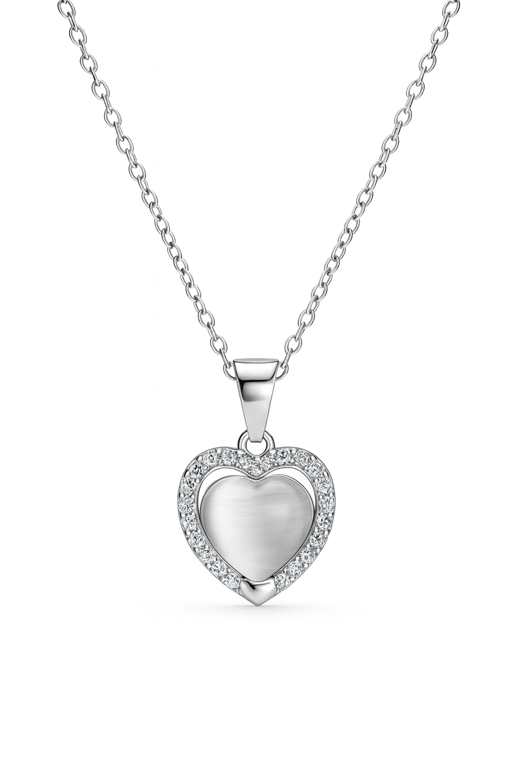 Jewello elegant silver-plated heart design with white stone stud sterling chain pendant set for women and girls.