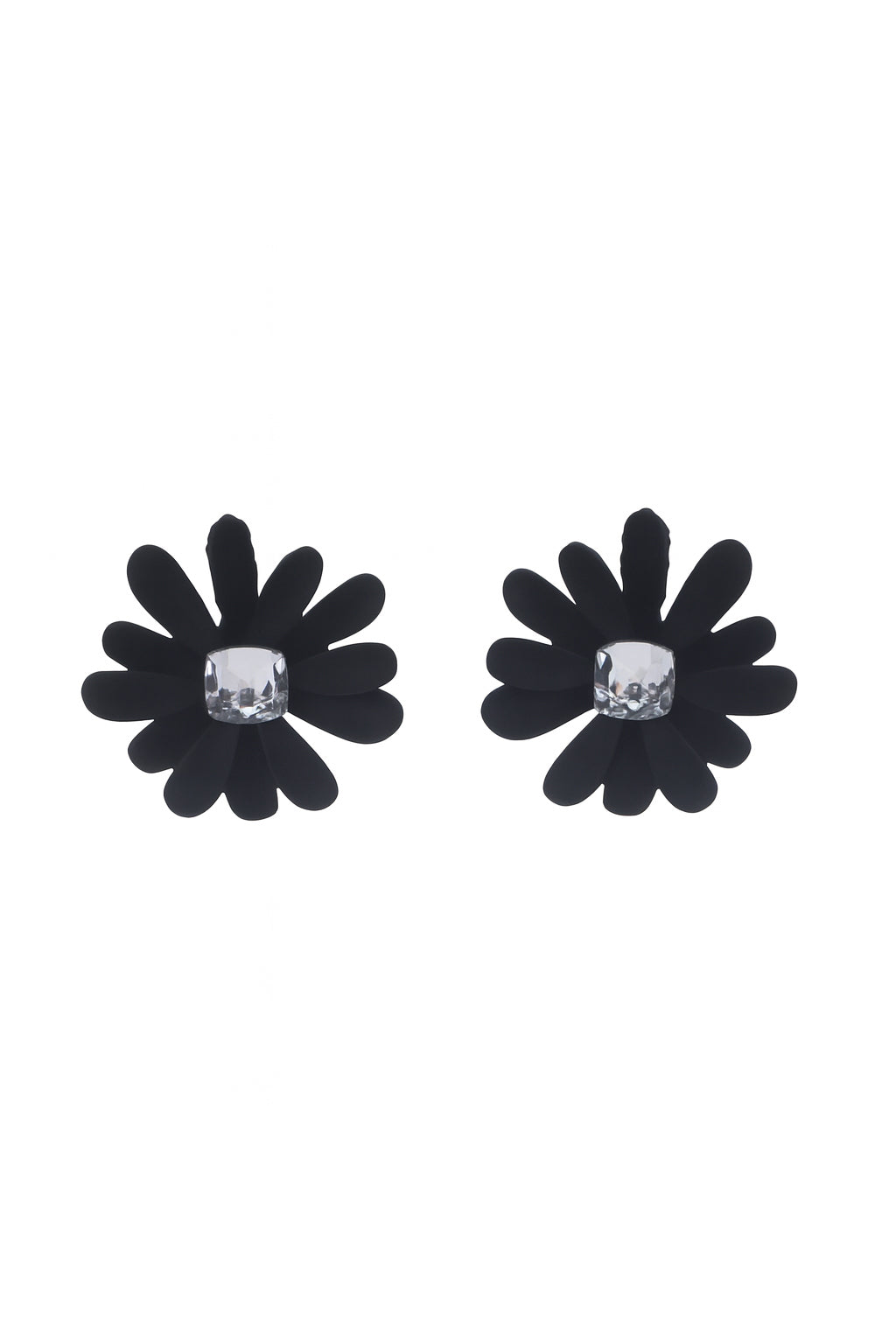 Jewello presents fashionable black flower design earrings, accented with shimmering white stone studs. These dainty Korean-style earrings are lightweight, anti-tarnish, and elegant, making them perfect for women and girls. A versatile accessory to complement any outfit, they bring timeless charm and also serve as a thoughtful gift for her