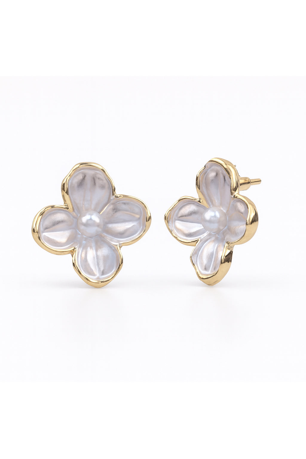 Jewello fashionable gold-plated flower design with light pink stone and with pearl bead stud dainty korean earring for women and girls. Daily wear earring, office wear earring. Gift for her.