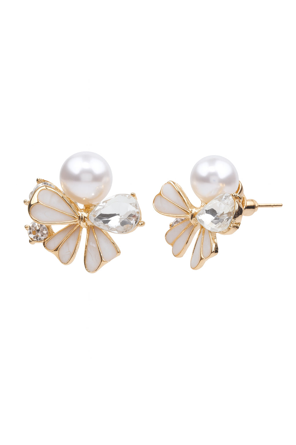 Jewello trendy floral design with shimmering pearl and white stone stud korean earring for women and girls. Gift for her.