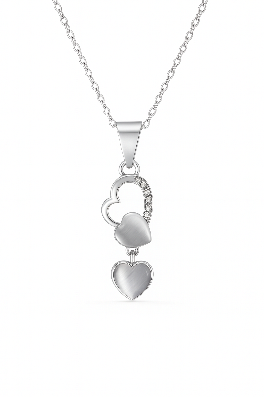 Jewello trendy silver-plated heart design with white stone stud chain pendant set for women and girls.