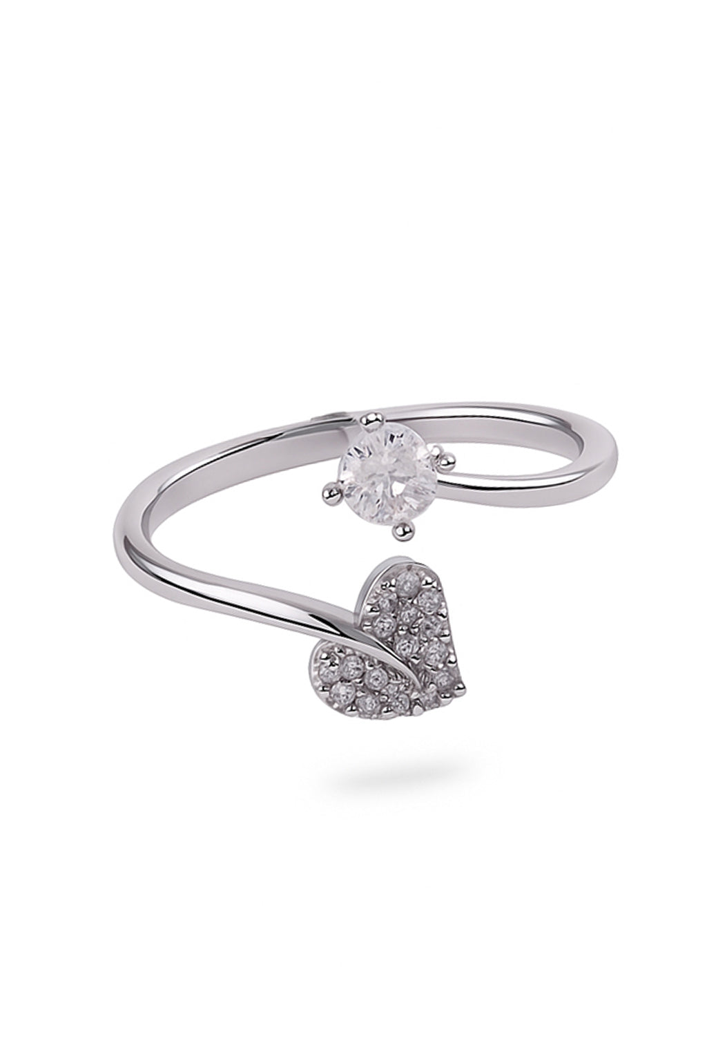 Jewello trendy silver-plated heart shape design and studded shimmering American diamond Adjustable finger ring for women and girls.